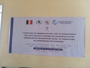 Dans le cadre du Projet Régional d’Appui au Pastoralisme au Sahel (PRAPS-2-TD) mis en œuvre par l’OHDEL dans les Provinces du Ouaddai, Sila et Guera, il s’est tenu du 01 au 03 mars 2024 à Abéché un atelier d’information dédié au financement des sous-projets chaînes de valeur et activités génératrices de revenus (AGR). L’objectif de l’atelier était de fournir une compréhension approfondie des mécanismes de financement disponibles pour les sous-projets et les conditions requises pour la soumission des dossiers. Au total, 30 participants issus des Organisations de Producteurs (OP) des chaines de valeurs bétail, les entrepreneurs privés (artisans) ainsi que les Organisations de jeunes et de femmes qui ont pris part à cet atelier.